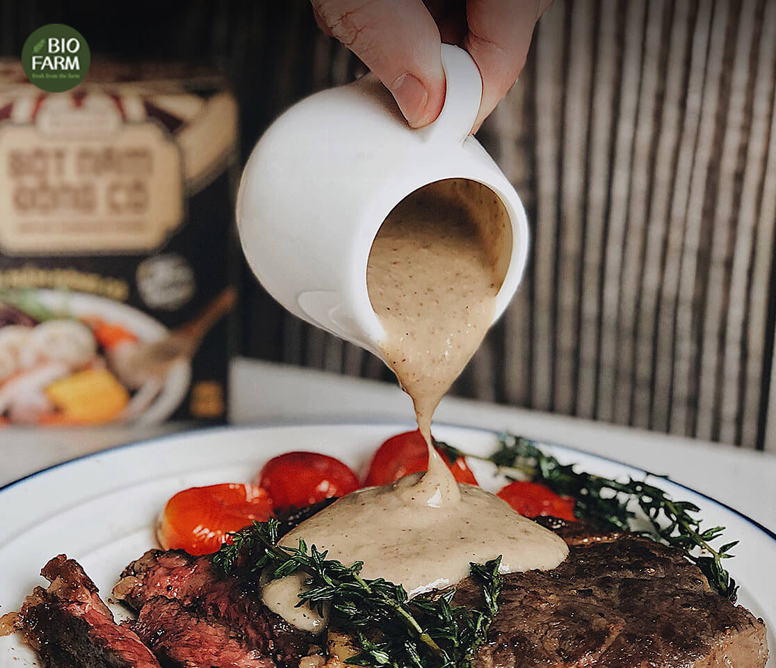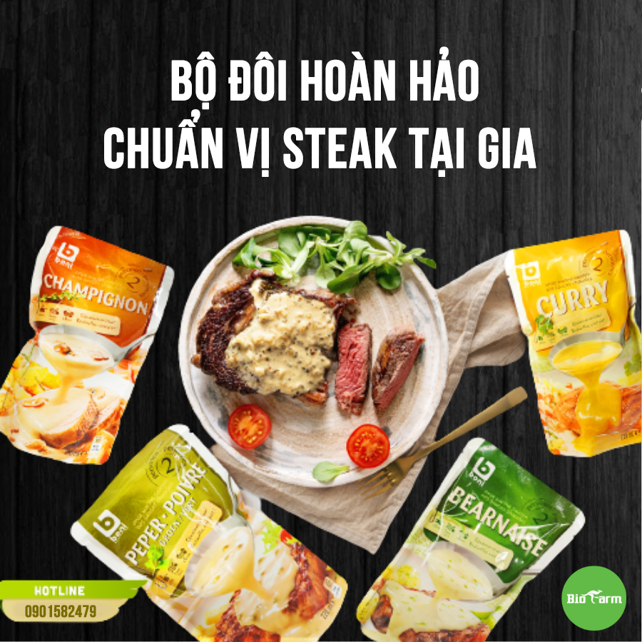 Theo các đầu bếp để làm ra một loại sốt dùng kèm với thịt (steak, nướng…) thường cần khoảng 30 loại nguyên liệu khác nhau và trải qua nhiều công đoạn: cắt, thái, bằm, pha trộn, đun nấu... Các bà nội trợ vẫn còn đang trăn trở, làm sao có đủ thời gian mà chuẩn bị, làm sao để có một món sốt thơm ngon, chuẩn vị Châu Âu. BioFarm mang tới một sản phẩm vô cùng hữu ích cho mọi người đây: 1. Khách hàng sẽ có lợi ích gì? - Không cần chuẩn bị nhiều nguyên liệu, gia vị cho món sốt - Tiện lợi trong sử dụng và bảo quản khi không sử dụng hết - Với gói sốt 220ml, rất vừa ăn, không quá nhiều và không quá ít, anh chị có thể thử nhiều hương vị khác nhau và bảo quản trong tủ lạnh