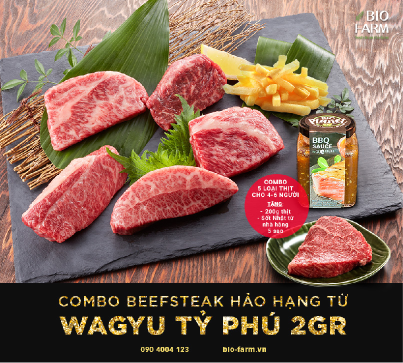 - BioFarm tặng thêm 200g thịt Tri-tip MB9+ bò Wagyu 2GR