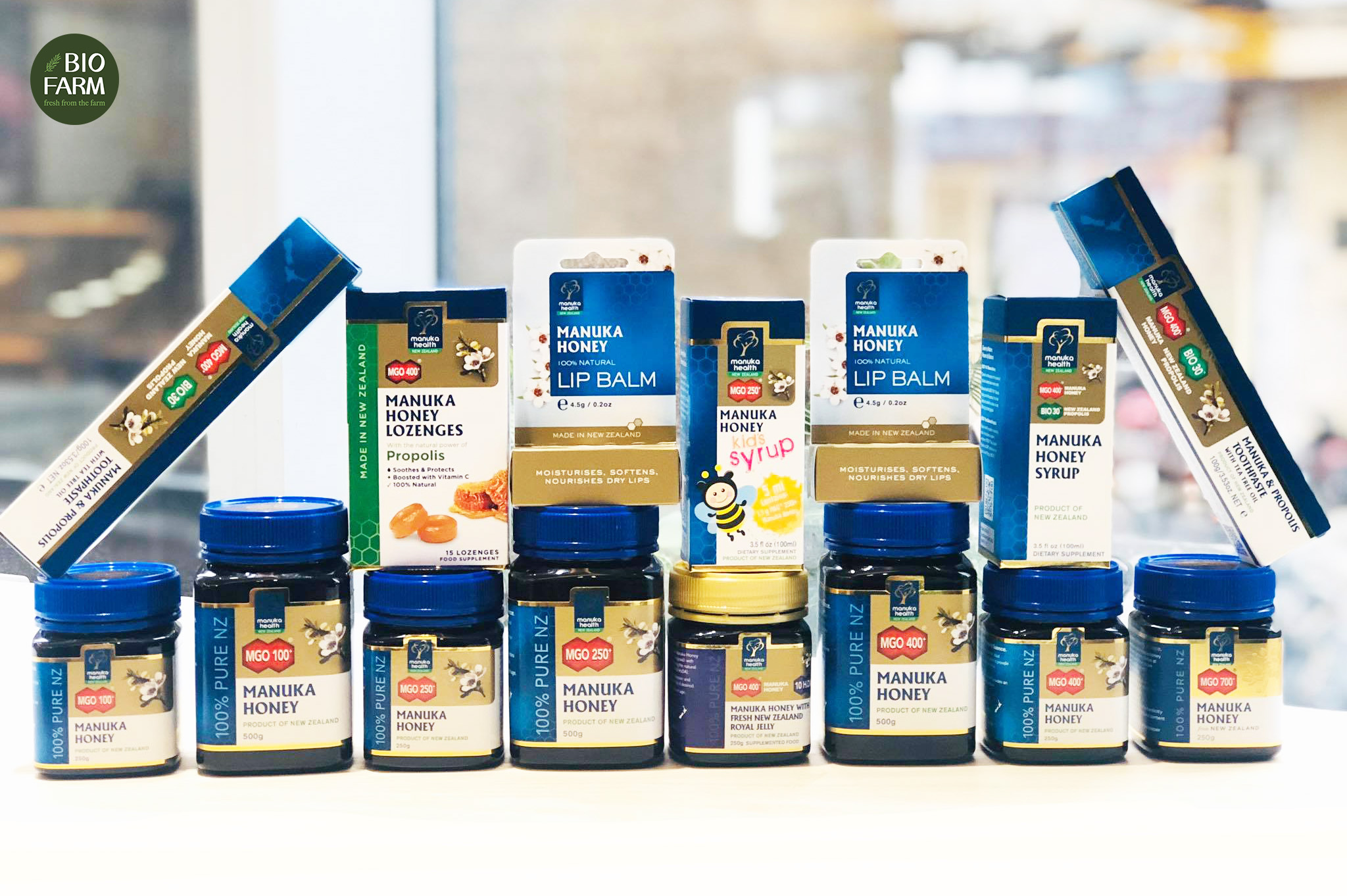 Biofarm là nhà nhập khẩu và phân phối tại Việt Nam các loại mật ong Manuka và các chế phẩm từ mật ong Manuka của NewZealand với độ kháng khuẩn từ MGO 100+ đến 850+. Có đủ các loại trọng lượng 250g, 500g và siro trị ho, viên ngậm mật ong kết hợp chanh, gừng, son dưỡng môi, kem đánh răng... phù hợp dùng cho cá nhân hay chung cho cả gia đình.