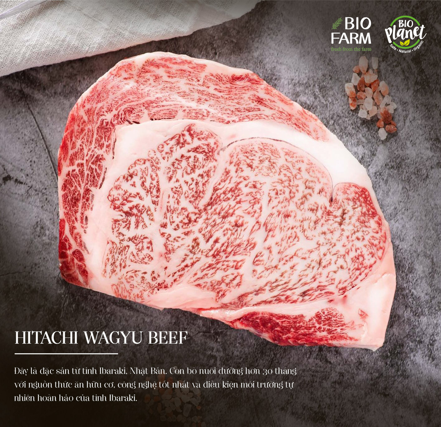 Thịt bò Nhật hảo hạng HITACHI WAGYU có nguồn gốc từ giống bò lông đen Nhật Bản. Được nuôi dưỡng hơn 30 tháng với nguồn thức ăn cũng như công nghệ tốt nhất trong điều kiện môi trường tự nhiên hoàn hảo của tỉnh Ibaraki, thịt bò ở đây đã đạt được sự cân bằng tuyệt hảo về độ mỡ trong thịt, tạo nên thớ thịt mềm ngậy.