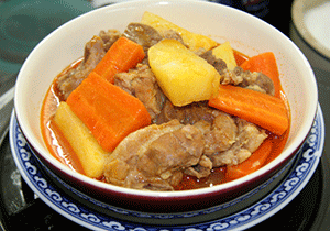 - Khoai tây: gọt vỏ, rửa sạch, nếu củ nhỏ thì để nguyên, còn củ to thì bổ làm đôi. Chúng ta không nên lấy những củ khoai tây mọc mầm vì những củ này không bở và ngon như những củ khác.