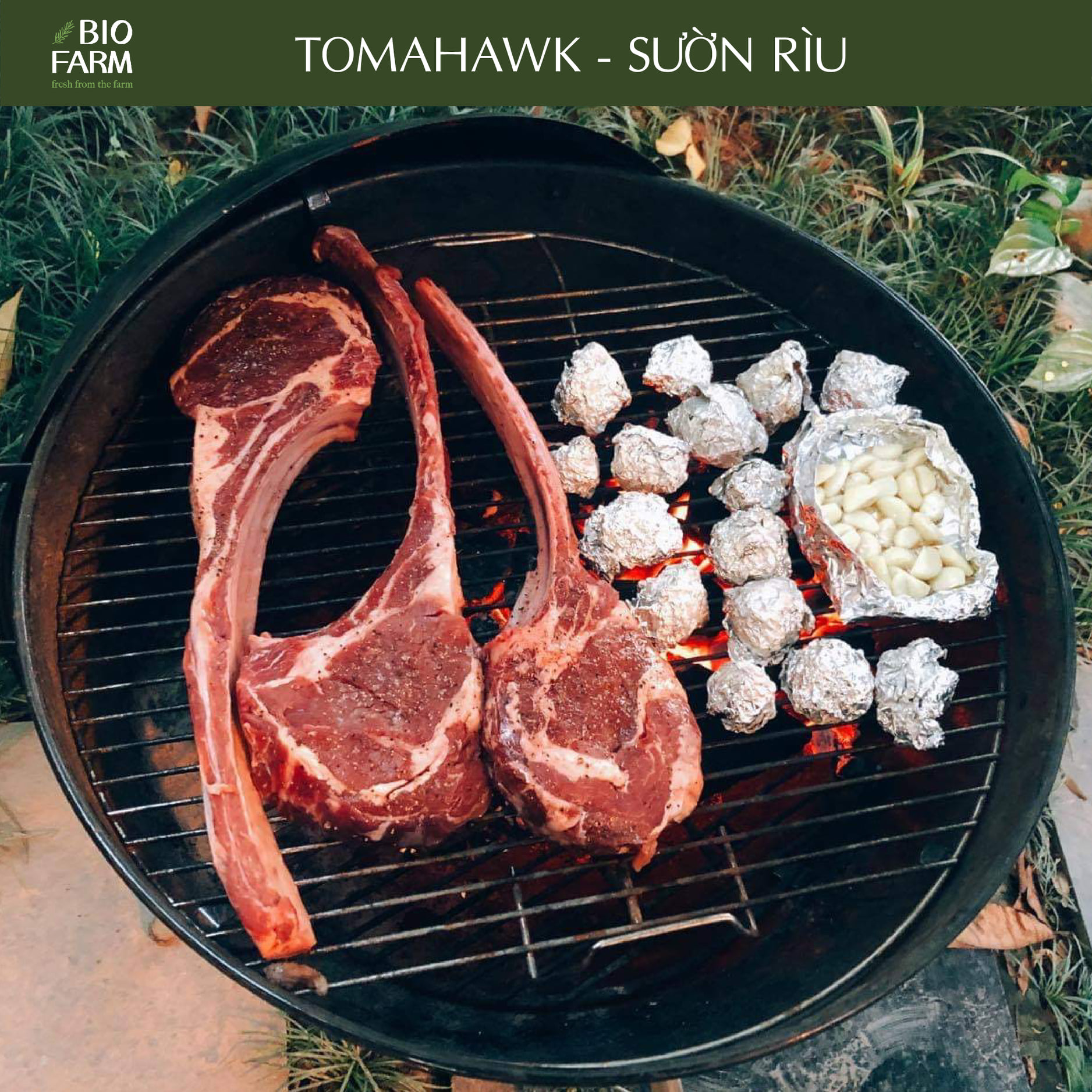 Tomahawk à phần thịt được cắt từ sườn và được lọc toàn bộ các phần gân, mỡ và màng gân. Miếng sườn bò Tomahawk có vân mỡ đan xen thịt nên khi làm nướng hoặc rán đều không bị khô mà sẽ mềm thơm.
