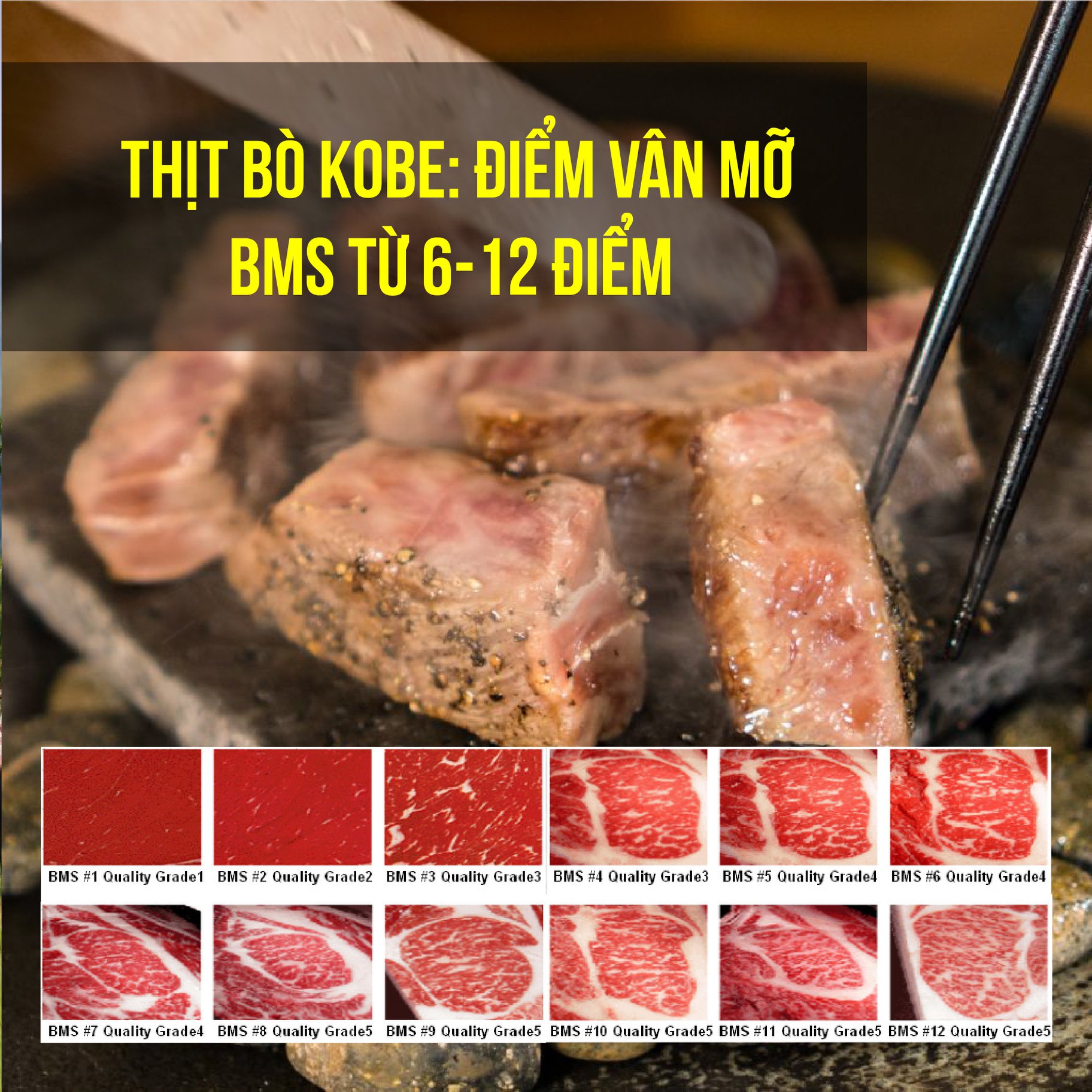 - BMS (Beef Marbling Standard) là chỉ số điểm vân mỡ của thịt bò: