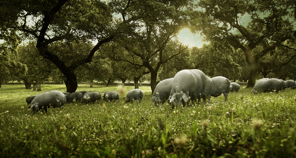• 𝐇𝐞𝐨 𝐈𝐛𝐞𝐫𝐢𝐜𝐨 có nguồn gốc từ giống heo đen thuần chủng được chăn thả tự nhiên trên rừng sồi rộng hàng ngàn mẫu Anh. Không khí trong lành, tinh khiết để cho heo có thể tự do thoải mái kiếm ăn và chơi đùa.